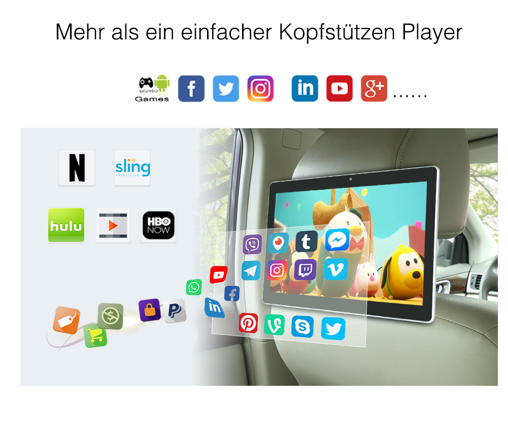 Das ultradünne Bildschirmdesign macht es besser für Kinder geeignet und ist mit einer Halterung ausgestattet, die auf Reisen als Kopfstütze und zu Hause als Tablet verwendet werden kann.