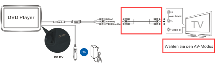 The connection method is as shown in the figure. Of course, you shouldn't ignore the need for a cable, RCA to RCA AV cable. This must be purchased.