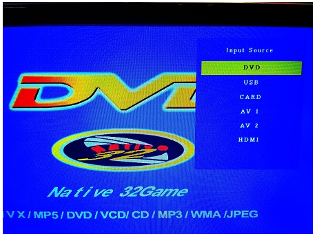 Secondly, the player receiving the video must switch to AV1 mode. Touch the "Power/Mode Switch" button to enter the "Input Source" window, and then touch the "Power/Mode Switch" button to select AV1.