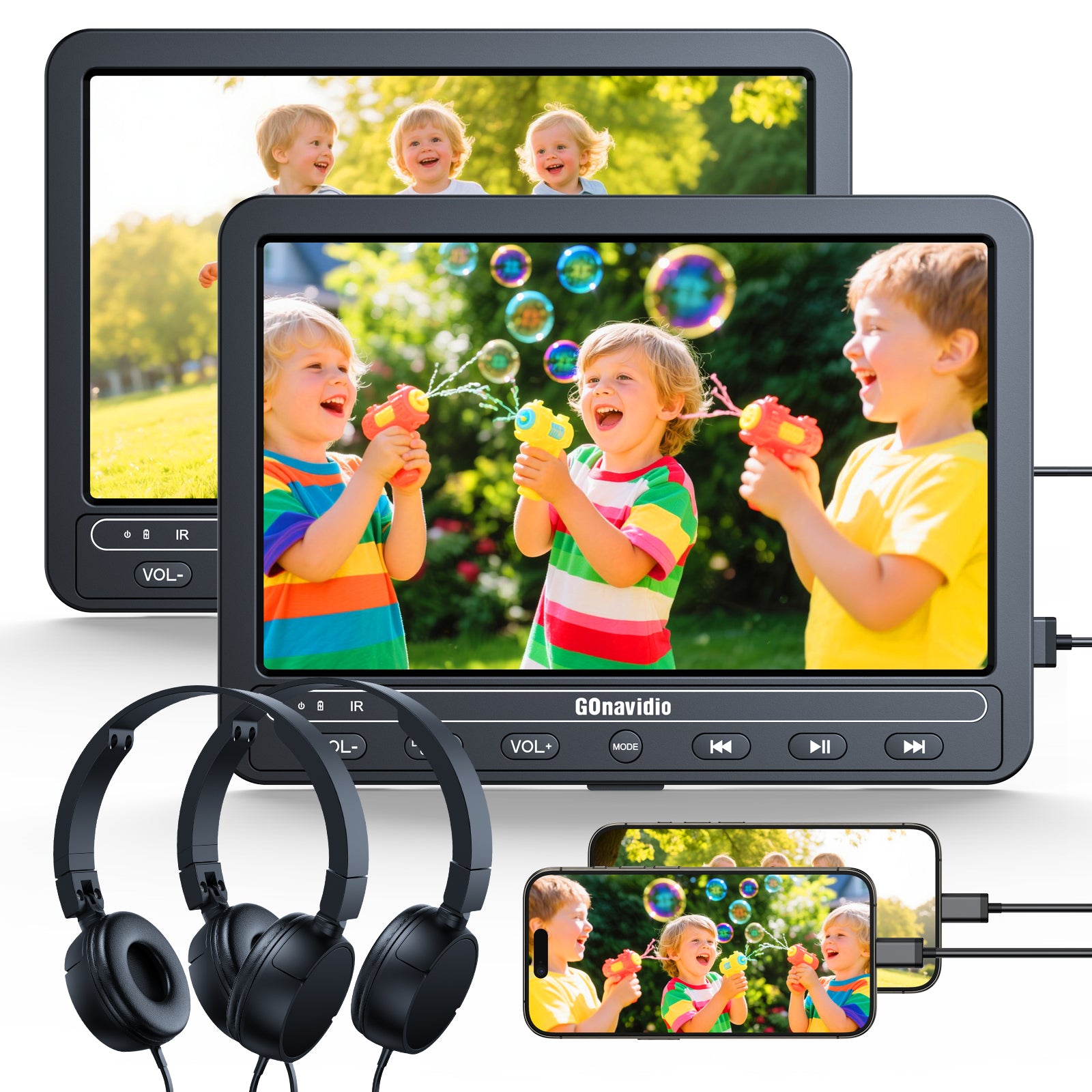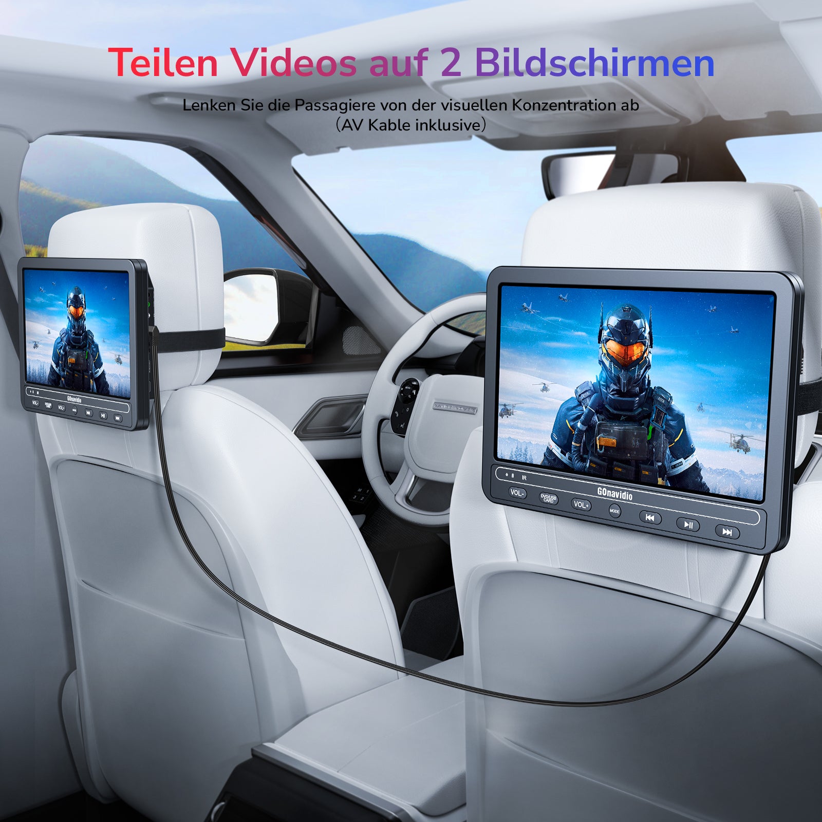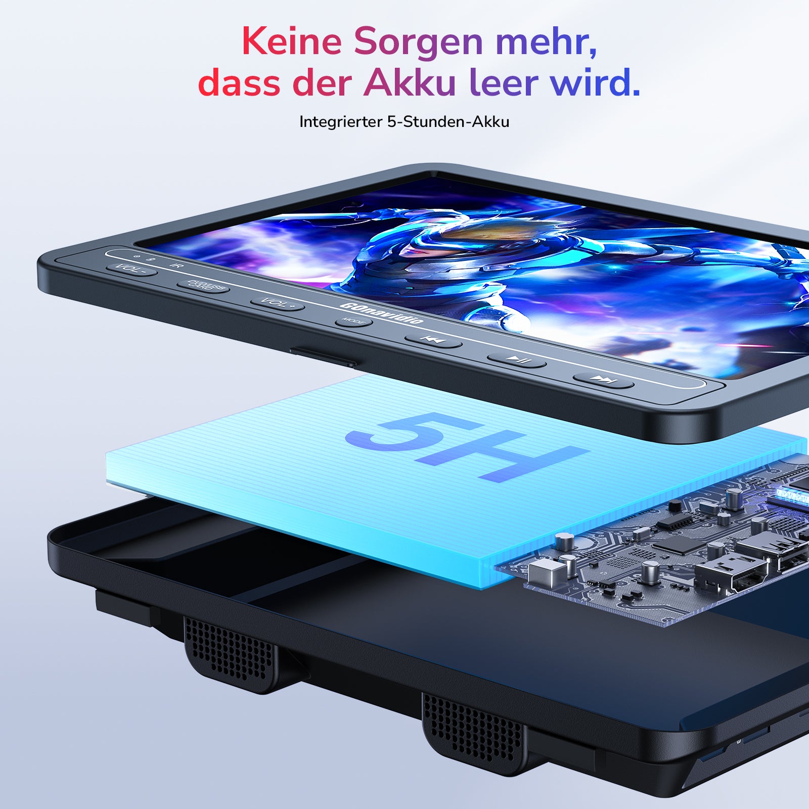 10,5-Zoll DVD Player Auto Kinder 2 Monitore mit 5000 mAh Akku und 2 Kopfhörer