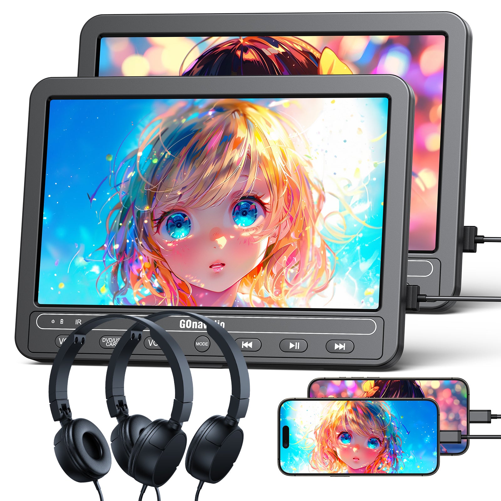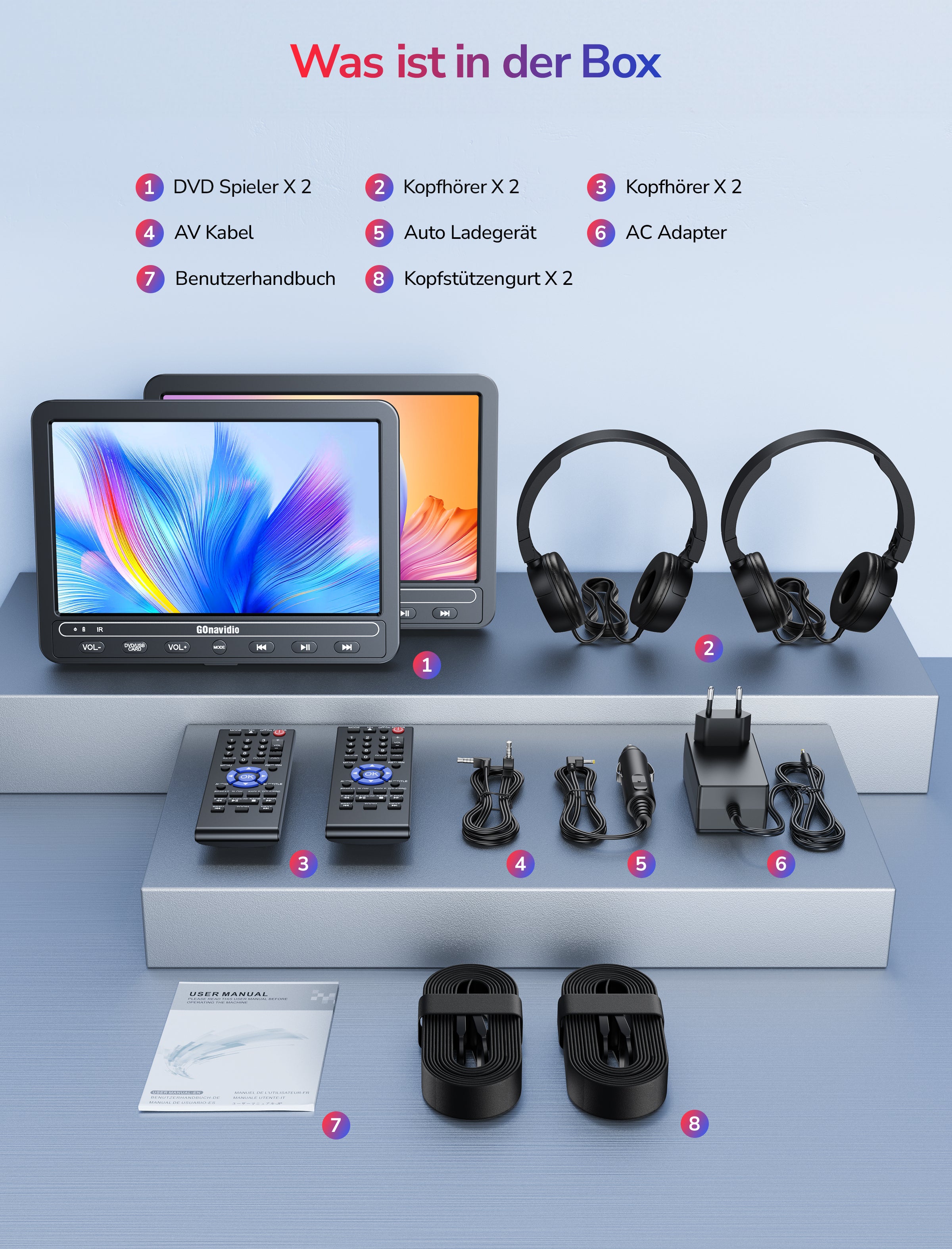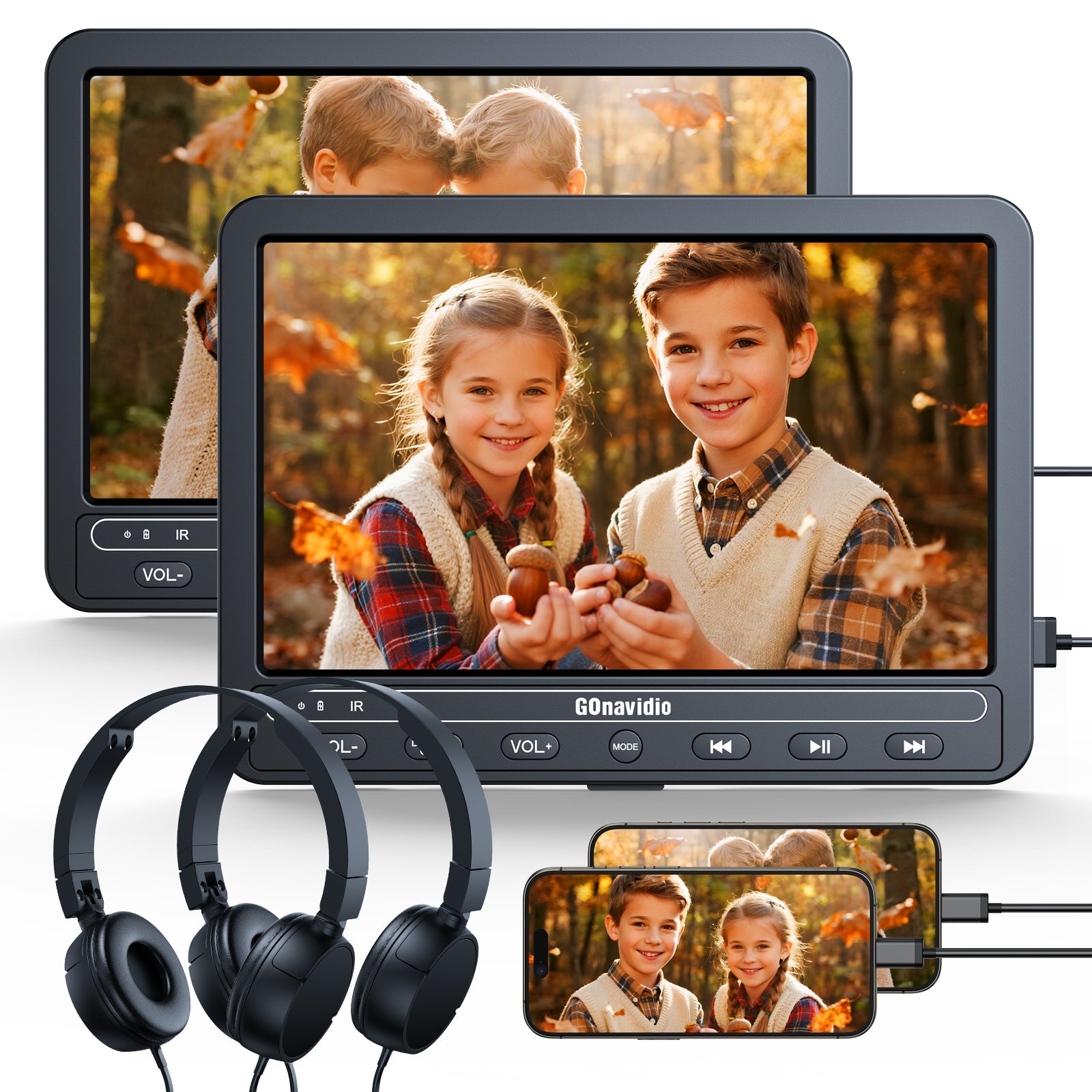 10,5-Zoll DVD Player Auto Kinder 2 Monitore mit 5000 mAh Akku und 2 Kopfhörer